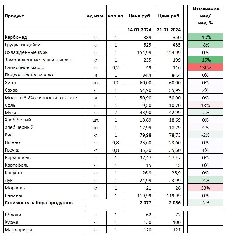 В конце недели мы, как обычно, мониторили цены на продукты. Набор, стоимость которого мы отслеживаем в сетевых магазинах, дискаунтерах и на рынке, взят из потребительской корзины, к ним прибавлены сезонные фрукты. Наша корзина дешевых продуктов за неделю уменьшилась в цене на 41 рубль 22 копейки. В основном, за счет мяса. Свинина на Центральном рынке удивительно дешевая, а продавцы, можно сказать, умоляют ее купить.