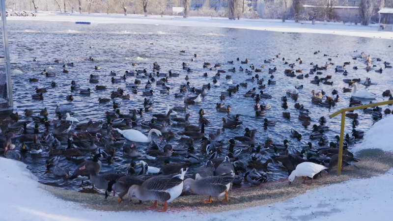 На Лебединое озеро НЛМК слетелись зимовать городские утки